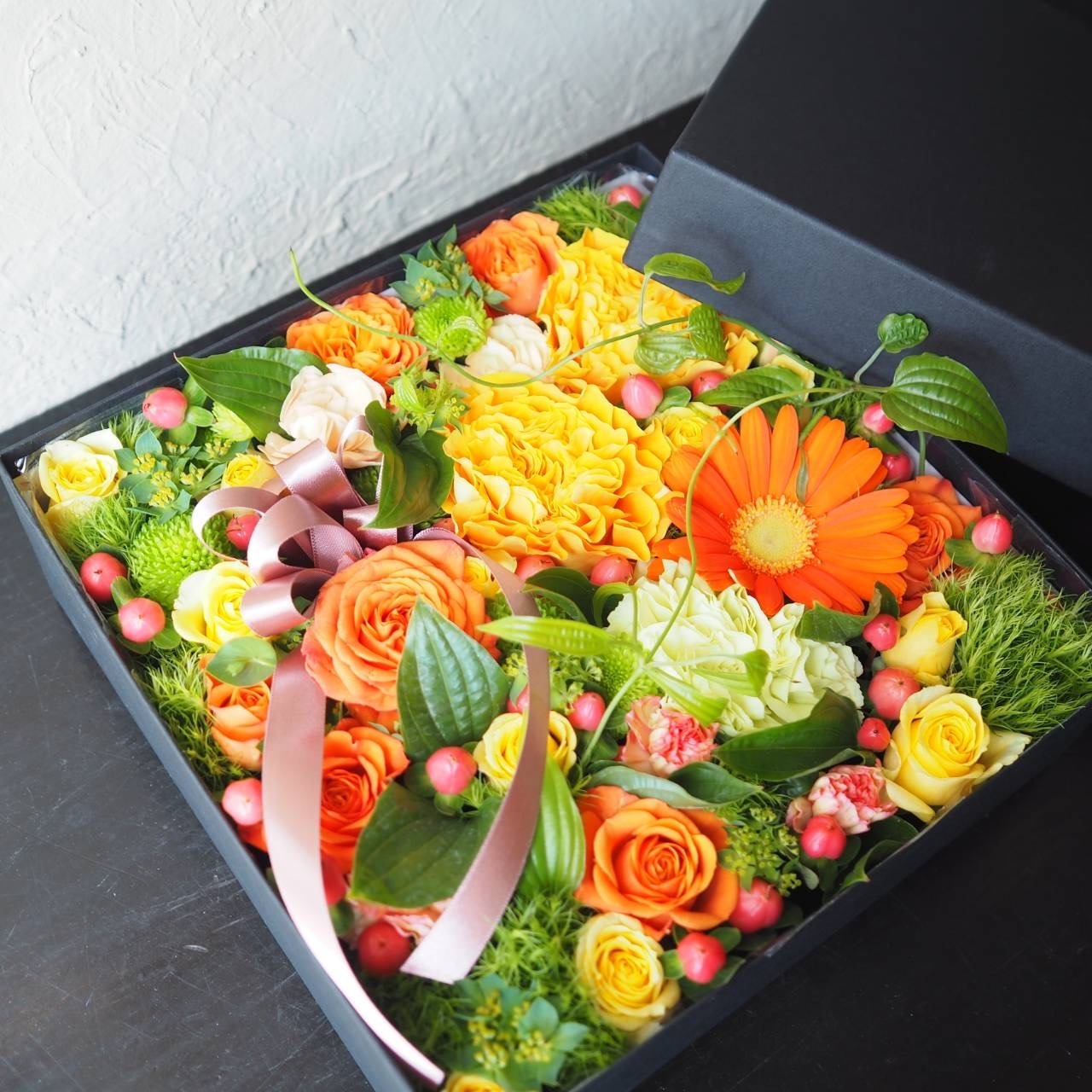 【心を込めた花贈り、BOXフラワーアレンジメント】
