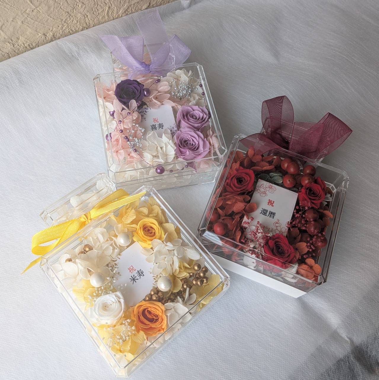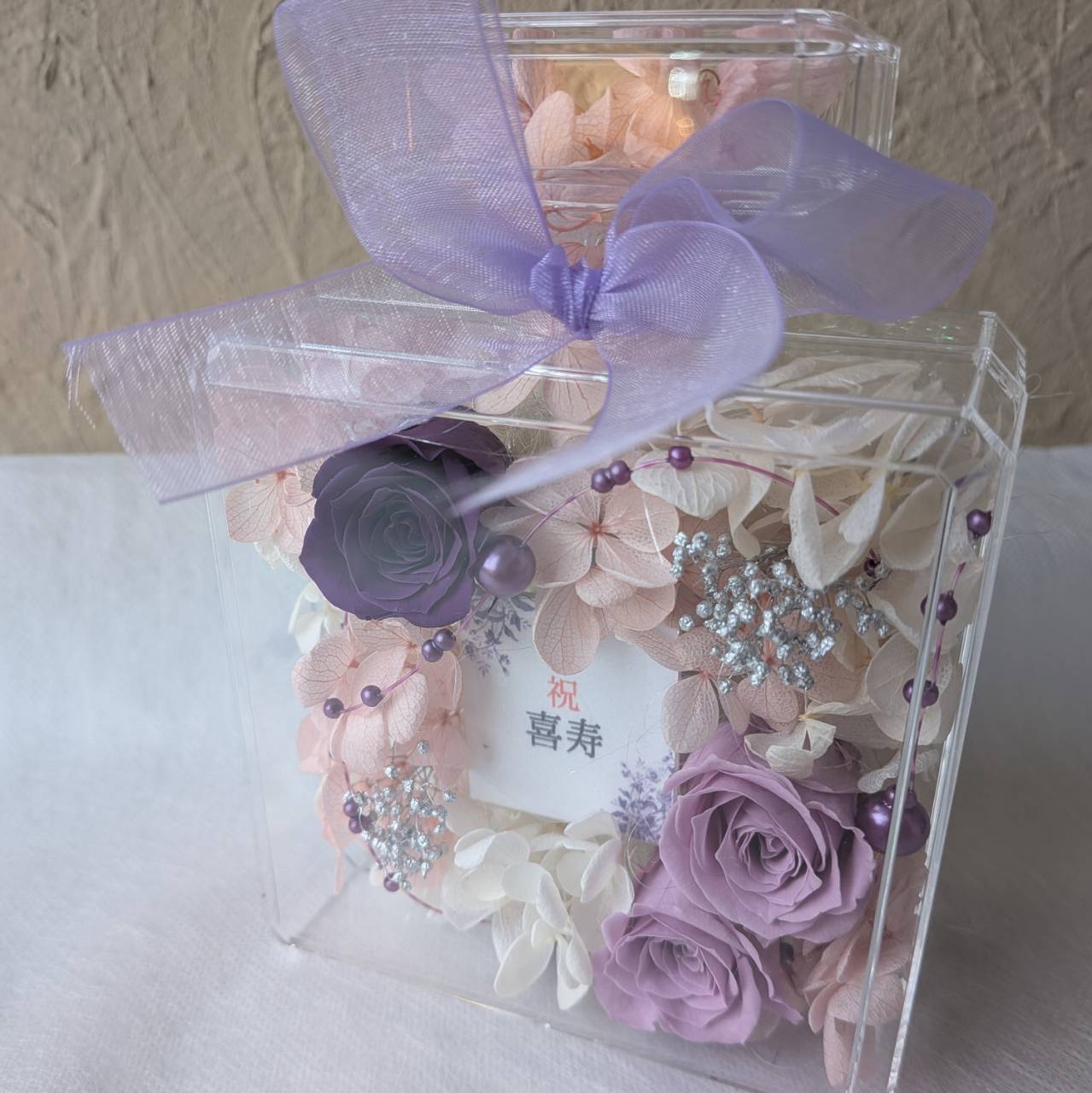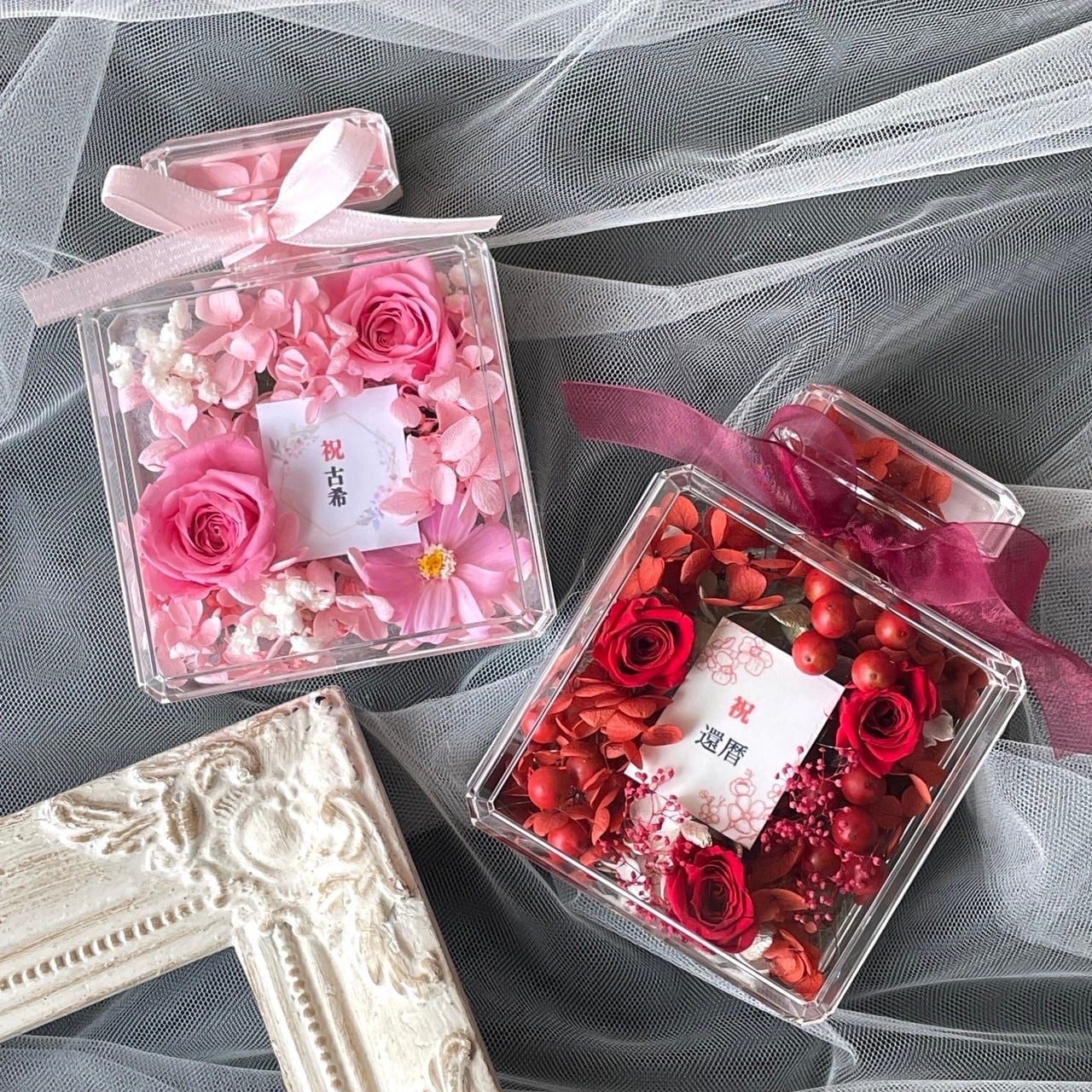 注意事項:使用するプリザーブドフラワーの開花サイズや色合いは作品サイズにより変わりますので、予めご了承ください。