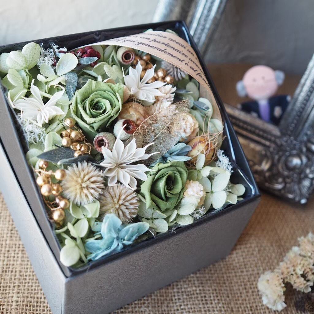 BOXフラワーアレンジメント【サプライズな贈り物】プリザーブドフラワー&ドライフラワー