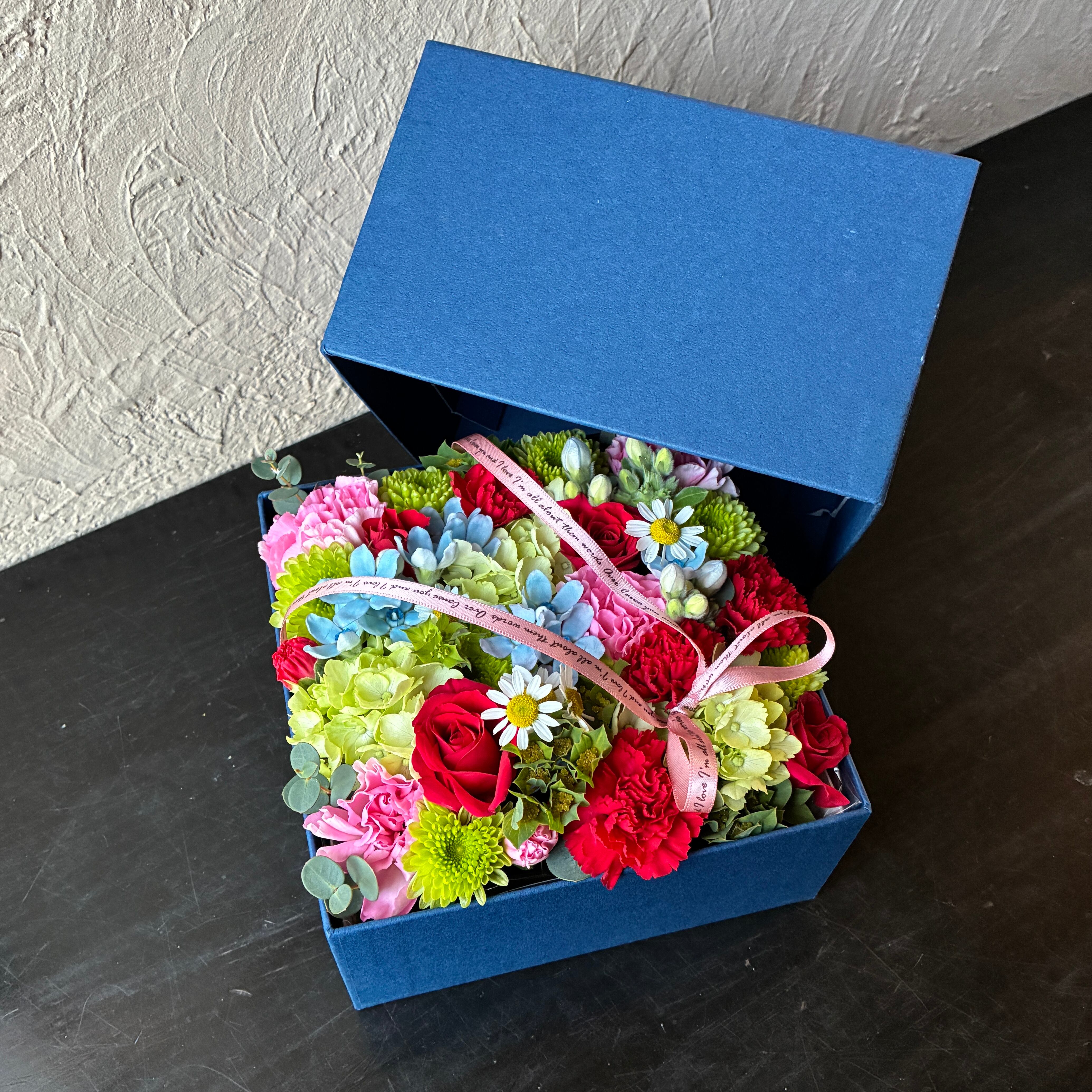 【2026母の日】BOXフラワーアレンジメント:ライトブルーBOX