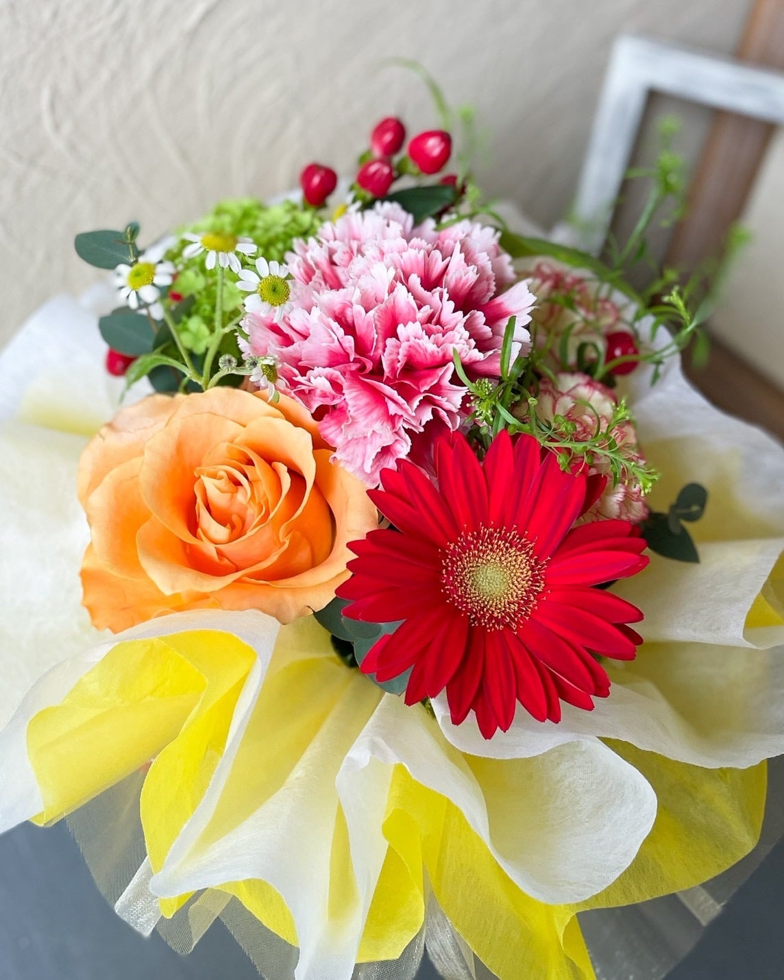 注意事項:写真はイメージです。フローリストがセレクトした旬のお花を使用しイメージを壊さないように厳選して仕上げます。お花、ラッピングは予告なく変更する場合があります。