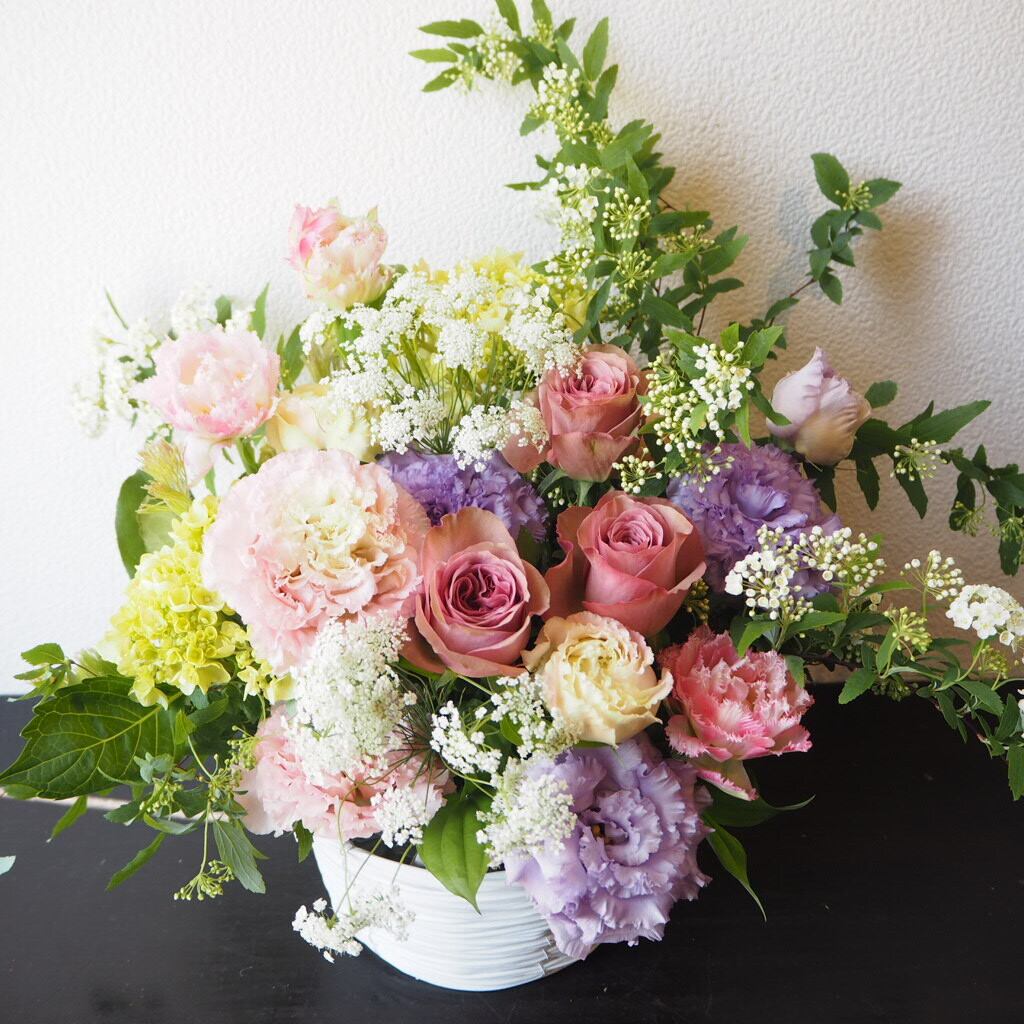 2026母の日限定 当店のフラワーデザイナー監修(1級フラワー装飾技能士)フローリストデザインおまかせの華やかなアレンジメント。
